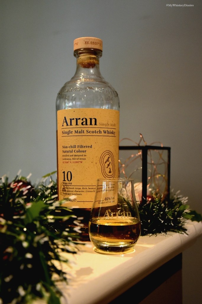 The Arran 10 is certainly a looker and it did look different, so much so that I thought this was possibly another expression released by the distillers. Rather it was a recent rebranding at the distillery in 2019 that had given the bottling its broad rounded shoulder and tapered bottom, a bit stout perhaps but a more naked yet regal, polished styling – very cool indeed! Another lovely addition was the inclusion of Braille and the distillery’s geographical location on the roughly smooth paper labelling that hugs the bottle.