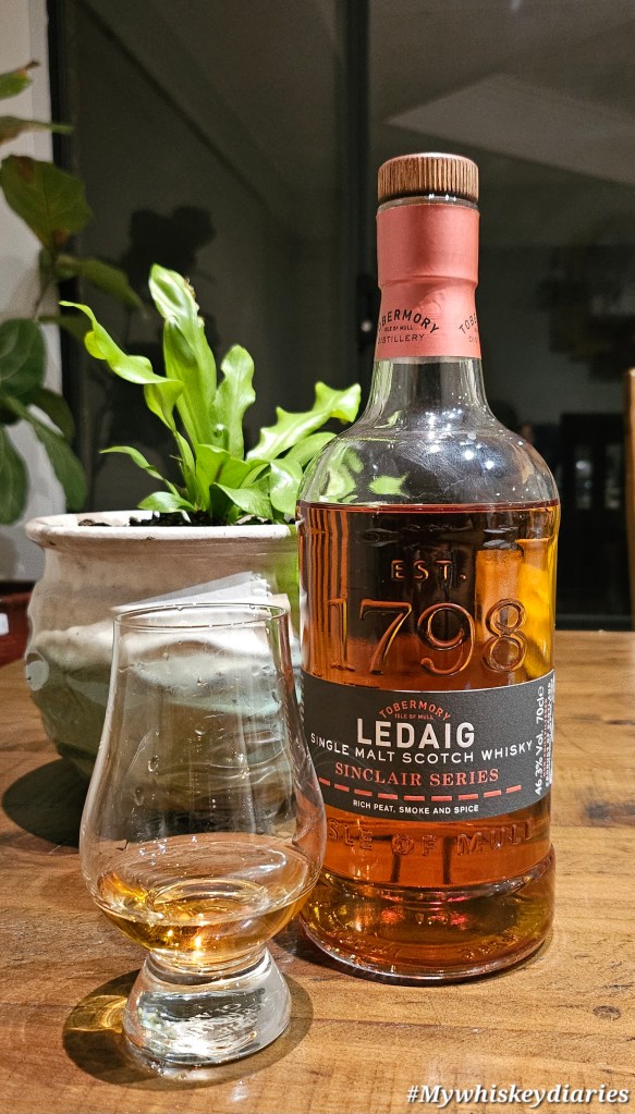 The “Sinclair” series is a homeage to their founder, John Sinclair, with the expression being the first. The bottle differs only slightly from the traditional Ledaig aesthetics, adorning a bronze orange ascot around the neck and sporting a similar coloured font for the labelling. The embossed details remain the same and uphold the rather subtle yet classy look to the bottle.