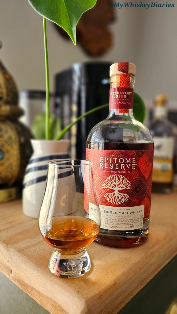 Spirit bohemath Diageo has been taking a keen interest in the Indian Subcontinent, gradually and steadily investing in a host of establishments and ventures, with their recents being Godawan and United’s Epitome Reserve. In fact, United Epitome Reserve‘s first expression released in the first half of 2021 was very well received, a single grain spirit made of rice, limited to 2000 bottles. Their second release, this time a peated single malt, and our whisky of interest, remains one of 3,600 released by the artisan craft distillery.